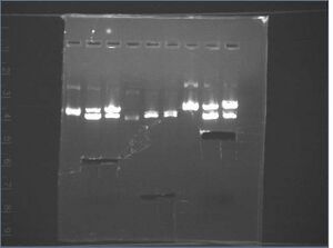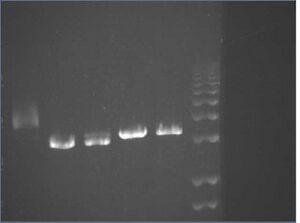 - Ligate GFP dev\X-P and pSB4A3\S-P, transform (Wait until we've midiprepped more pSB4A3 and do another digest, because the pSB4A3\S-P from our digest assay was a curious size)