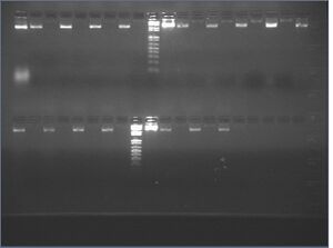 2% agarose, EtBr, 10mM MgCl2, 1hr @ 80V, DARKER IMAGE