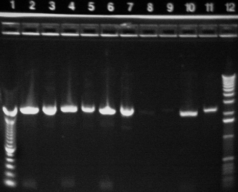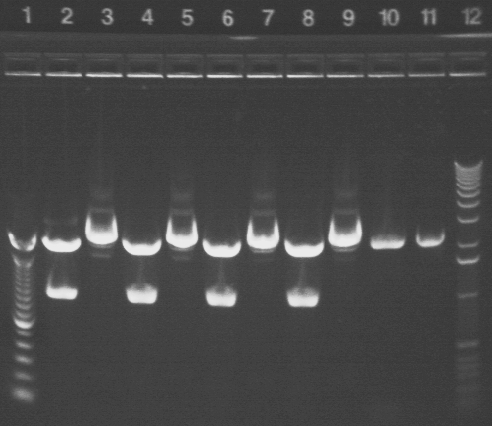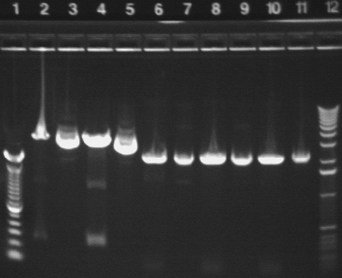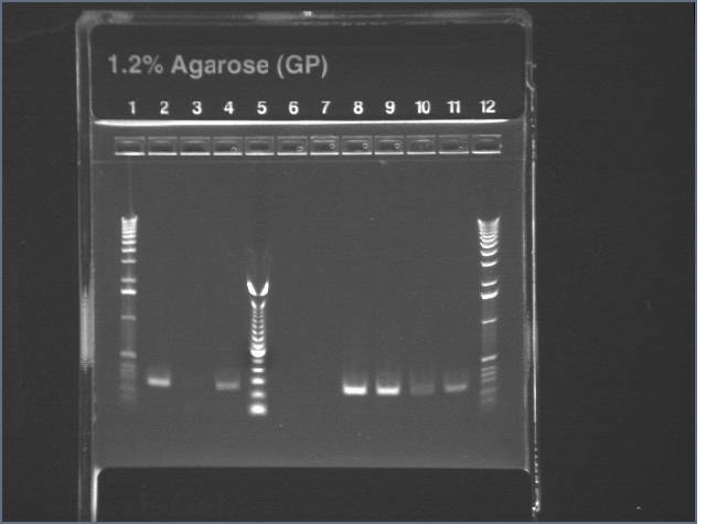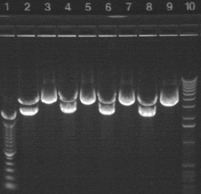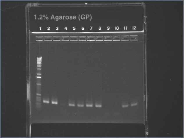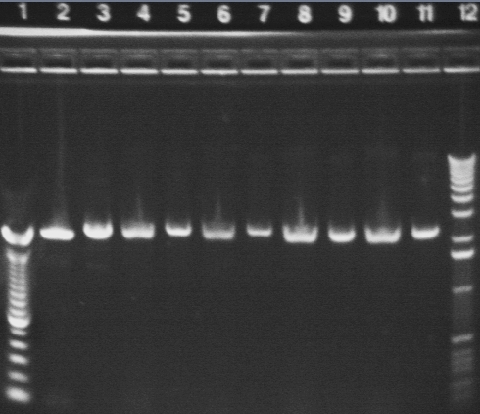 Note: There was a problem with the gel in Well 10, which most likely accounts for the lighter band.