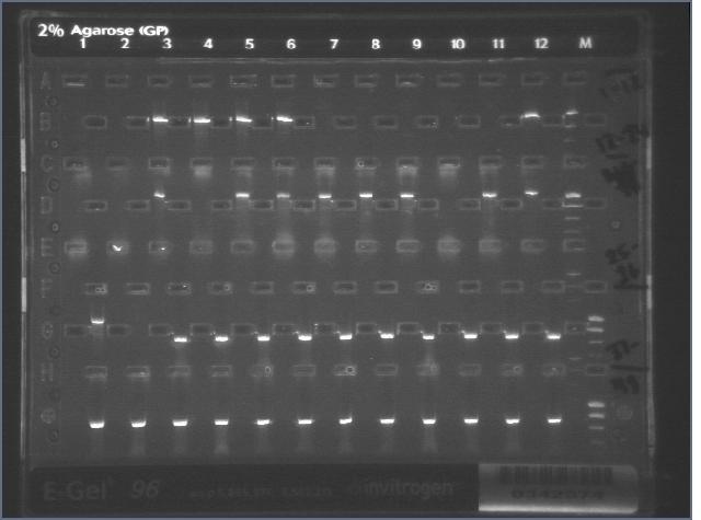 Lanes 8-12: P122>131 plate (1.3 kb)