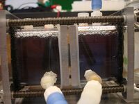 - cathode: titanium wire weaves around Pt covered carbon cloth