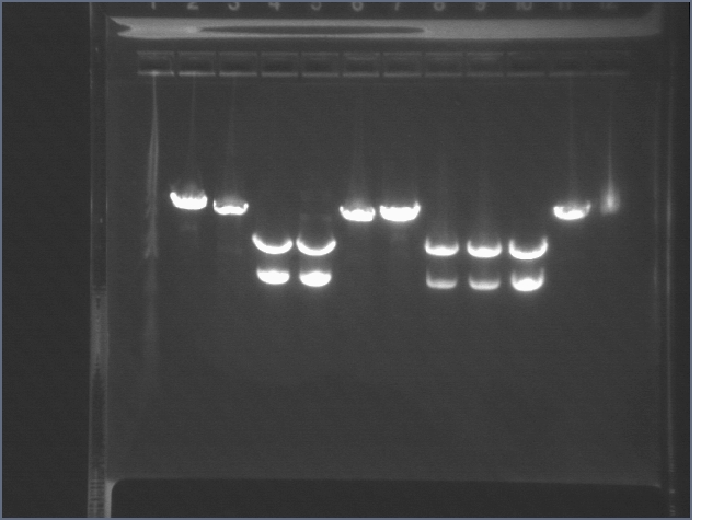 Gel here-- P104 was cut correctly but I made a mistake and thought it hadn't been cut properly, so discarded gel and repeated digest.