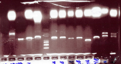 Below is the one of the gels from the miniprep: The bands run (from left to right)