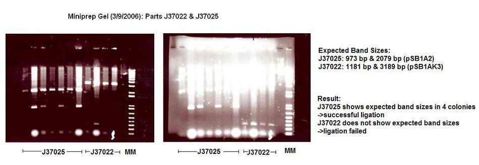 - Minipreped J37022(1) (colonies a,b,c,d), J37025(3) (colonies a,b,c,d), J27025(4) (colonies a,b,c,d)