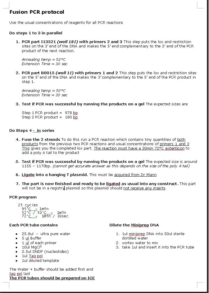 It is strongly advised to read this summary of how the part works before starting this protocall, click here