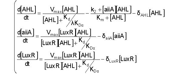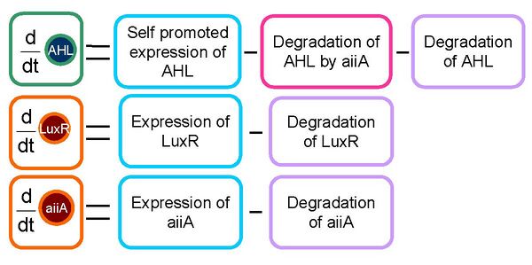 - From an experimental point of view, restricting our analysis makes sense. We have built test constructs to measure the growth of AHL, aiiA and LuxR as well as the degradation of AHL by aiiA. Our experimental results generally showed that our model was valid.
