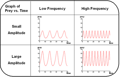 - To see this , let's fix the initial conditions to (Xo,Yo). We can ensure the ratios (d/c and a/b) of the model parameters are such that the centre coincide with (Xo,Yo) and thus we have oscillations of zero amplitude. Now we increase these ratios steadily (the centre moves away from the origin and our initial point), which also increases the amplitude of the oscillations.