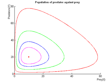 - Every closed trajectory corresponds to coupled oscillations of the prey and predator populations.