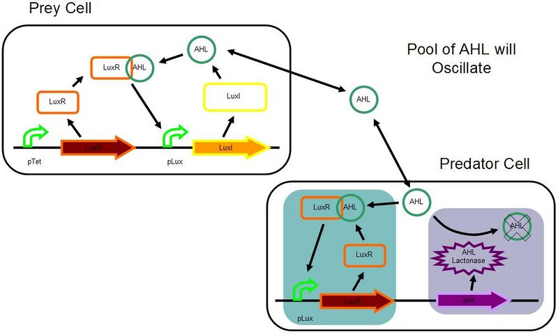 - We need to be able to control the prey's positive feedback loop to ensure that AHL concentration is 0 while cell cultures are growing.