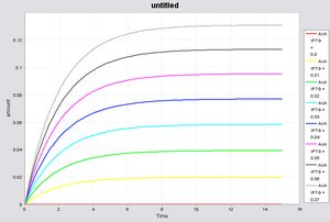 Depending upon the concentration of IPTG, the final steady state concentration of AiiA will change, as seen in the figure below.