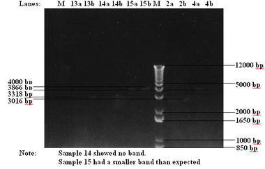 - Checked 2x 14 Biobricks on 1% agarose gel