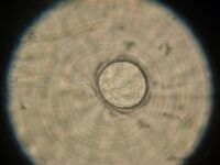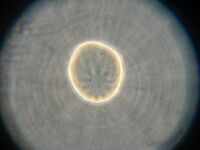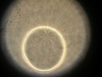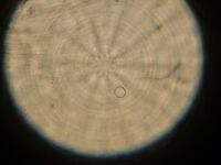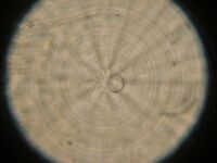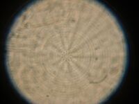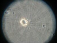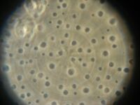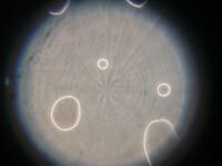 | A strange texture found in Sample 2. It was not clear whether these 'dots' were in aqueous solution or a large air bubble under the slide cover. |