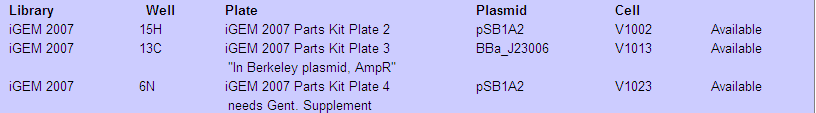 IGEM:IMPERIAL/2007/Projects/Cell by date/Implementation/List of Required Parts