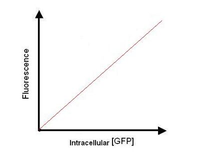 - Fluorescence vs Cultures of varying unknown intracellular [GFP]. Measuring the fluorescence of cultures of cells at set time intervals would measure a set of unknown intracellular [GFP]. For our objectives, we would need to compare this unknown concentration in terms of its extracellular content. This problem can be circumvented with the following experiment.