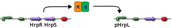Again, HrpR and HrpS are controlled by a single promoter. HrpV expression is
