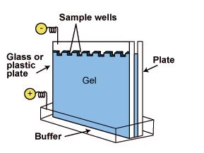Gel electrophoresis is a technique used to separate biological molecules such as RNA, DNA and proteins through a gel support. The gels are a porous network of cross-linked polymers, usually composed of agarose or polyacrylamide. The principle of separation is to apply an electric field to drive charged molecules through the gel and separated out a complex mixture into distinct bands. The separation is based upon the mobility of molecules through the gel.
