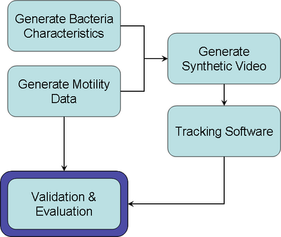 position: absolute; visibility: hidden; margin: 0; padding: 0; background: #66aadd; border: 1px solid #66aadd } #sddm div a { position: relative; left: 0; display: block; margin: 0; padding: 5px 10px; width: auto; white-space: nowrap; text-align: left; text-decoration: none; background: #FFFFFF; color: #2875DE; font: 11pt Calibri, Verdana, Arial, Geneva, sans-serif } #sddm div a:hover { background: #66aadd; color: #FFFFFF } </style></html> Software ValidationIn order to validate our choice of open-source tracking software, a synthetic video based on synthetic data was created. This video was then fed into the software for cell tracking, afterwhich data analysis to obtain bacteria motility characteristics was carried out. The data output was then compared with the synthetic data generated so as to ensure the effectiveness and integrity of the tracking software. The following figure describes our approach in validating the tracking software.