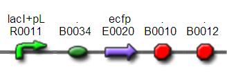- Test for expression of LacI gene using LacI repressible sequence coupled with reporter gene. BBa_I13601 is such a reporter - coupled with CFP.