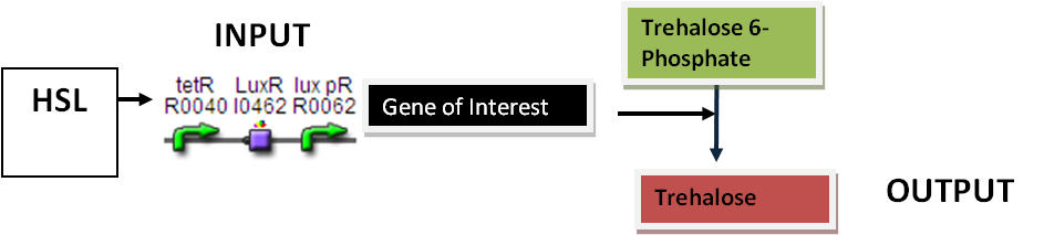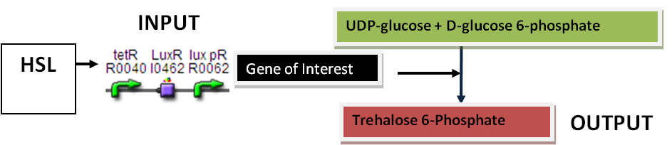 | OtsA | AHL concentration | Indirect colorimetric measurement of trehalose-6-phosphate | F2620, RBS, OtsA, TT | |