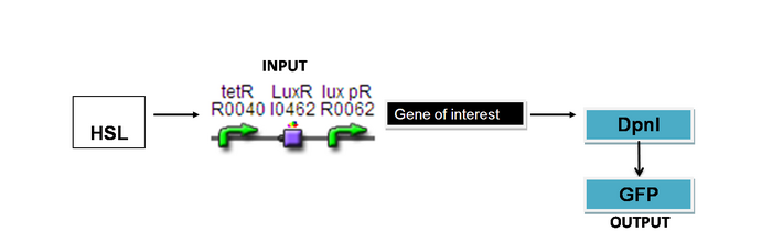 BBa_I0500, RBS, Taq1, TT BBa_I0500, RBS, DpnII, RBS, Taq1, TT BBa_I0500, RBS, DpnII, RBS, Taq1, TT, BBa_J23103,RBS,DAM,TT (in DAM –ve strain) |