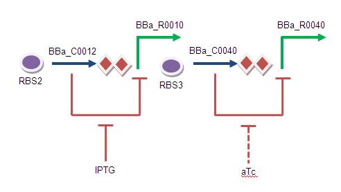 3) Once the IPTG is saturated, LacI represses the LacI responsive promoter. This decreases the expression of TetR repressor.
