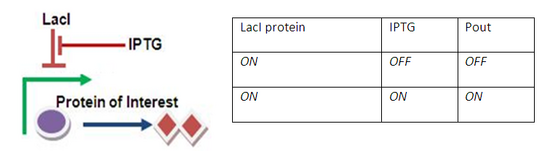 - In the absence of IPTG, LacI represses the production of the protein of interest (which is our drug, cellulase or PAH)