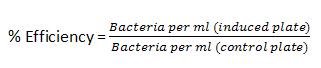2. We can then calculate % efficiency of our killing strategy. We use the calculation below for each dilution plate.