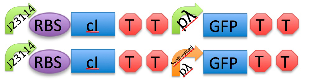 - show that on coupling cI to the lambda promoter, cI represses the promoter activity