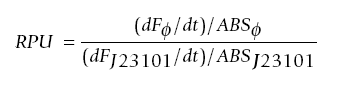 The fluorescence from the lambda promoter can be characterised by the equation for RPU (refer to part 1)