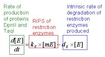 Equation 4: Equation describing the rate of production of restriction enzymes. (Translation)