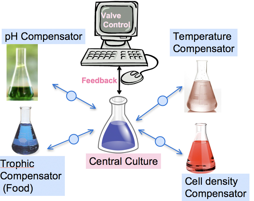 This system would allow to predict (based on computer data analysis) stressful conditions and consequetly open the valve linking the stress-remediating and the central (futurely stressed) cultures.