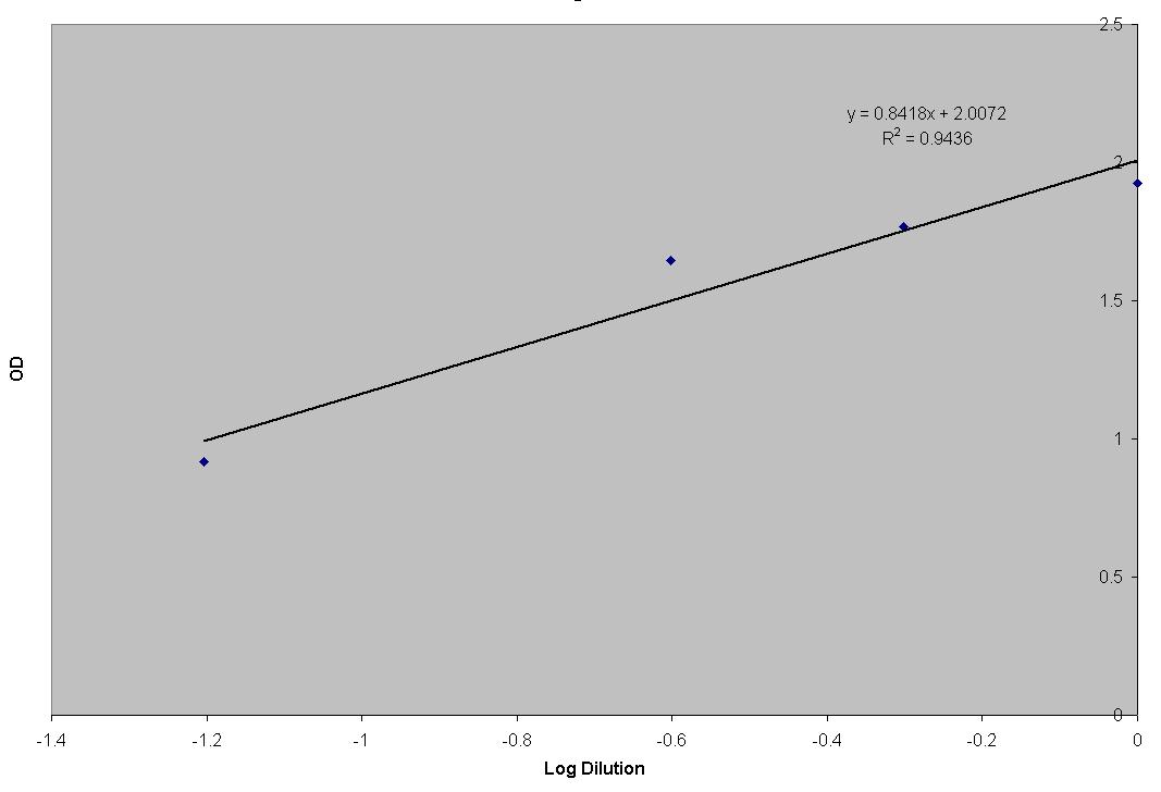 After Running these cultures overnight I was surprised to find the OD of the 1/16 LB culture was 1.04! So our LB must be very rich. So I made futher dilutions from the 1/16 stock