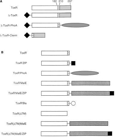 | lambda-ToxR-PhoA | 71 | 80 | Proves periplasmic sequences not essential for dimerization |