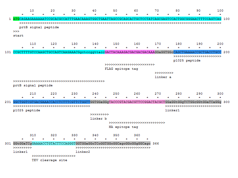 DNA sequence to synthesize - epitope/p1025/linker (6/17/08)