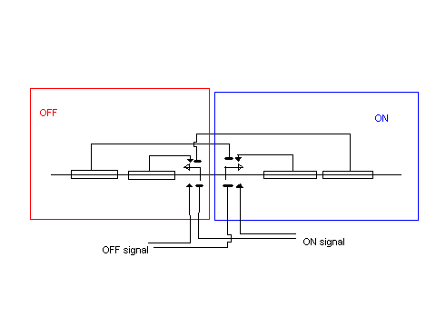For example. If we only had one loop for 'on' then it could easily turn on by itself. However, in this system, the off loop is constantly repressing the on loop therefore it doesnt turn on by itself. Also vica vera, the on loop represses the off loop.