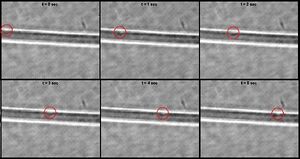 Our microfluidic channel research is going well. We have successfully constructed polydimethylsiloxane (PDMS) microchannels and altered their surface chemistry via O2 plasma coating. The O2 plasma coating process creates a hydrophilic environment in the channels so that when placed on low density Eiken agar, they create a microfluidic device by drawing liquid from the media itself (see photo bottom right). Our swarm assays are grown on this media, and when the channels are placed on the edge of the colony, swarming E. coli swim through the channels. At this point, we have successfully demonstrated the ability of our swarming cells to work with this microfluidic device using differential interference contrast (DIC) microscopy (see photo bottom center). It is our goal to also be able to use a combination of DIC and fluorescence microscopy to track E. coli strains containing various fluorescent proteins (RFP, YFP, and GFP).