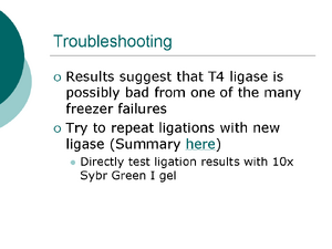 All ligations were performed for both ten minutes and an hour, producing two sets of plates.