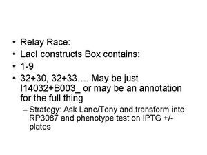 - Transform low copy plasmid (amp)