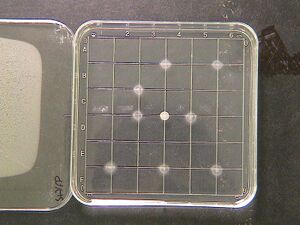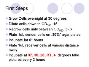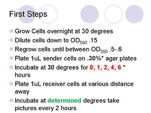 - 3uL placed of receiver cells placed in various distances from 3uL inoculated sender colony.