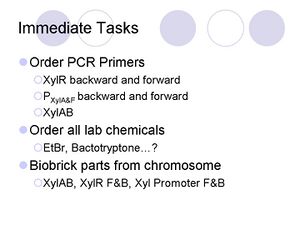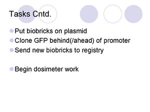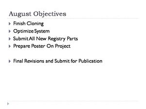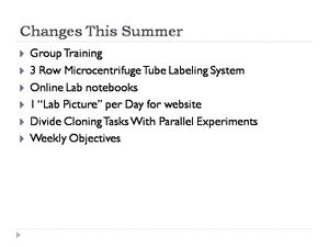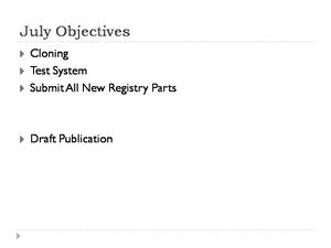 These are all the general cloning kinds of things that will be used to build our constructs. We will probably get into getting parts sequenced if things do not seem to be working, but that gets expensive and takes a couple of days, so my thoughts are we should save that until it looks like we are getting into trouble. Labeling is key.