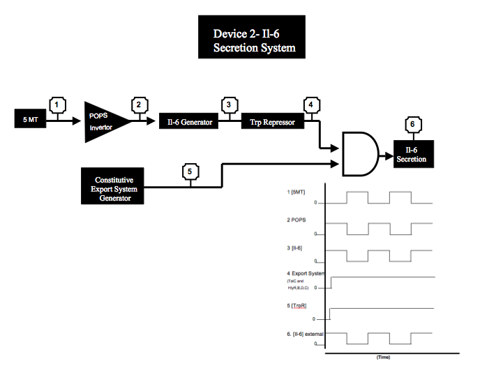 The anti-immunosuppressive device consists of two components: a sensor and a responder. The sensor will detect local concentrations of a marker indicative of Treg-driven immunosuppression. When the levels of this input signal reach above a certain baseline threshold, the sensor will induce activity from the responder. The resulting output signal will modify the local cytokine milieu to support differentiation of pro-inflammatory Th17 cells and repress the immunosuppressive Treg lineage.