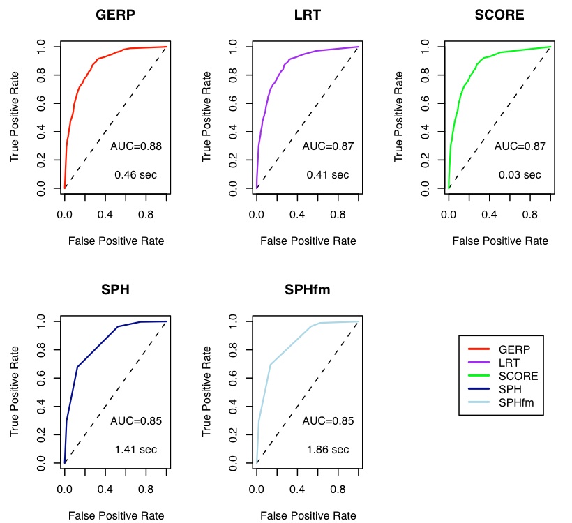 Interestingly, the different methods have very similar performance. Scores from single sites can be combined to score genomic elements of various lengths, e.g. genes or operons. We are now conducting non-parametric simulations by resampling from real alignments with 4-fold degenerate sites representing neutral sequence and non-degenerate sites (second codon positions) representing sequence under negative selection. These data-based simulations will account for the effects of gaps and missing data in multiple sequence alignments, features that are not present in parametrically simulated data. This is joint work with Adam Siepel at Cornell University.