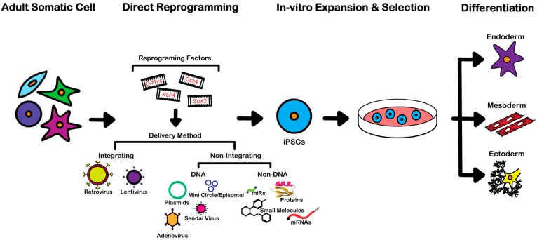 - Micro RNAs - Introducing microRNAs by transfection, especially mir-200c, mir-302s and mir-369s family microRNAs, has successfully produced iPSCs from both human and mouse somatic cells. This method is promising because it does not require a viral vector [17].