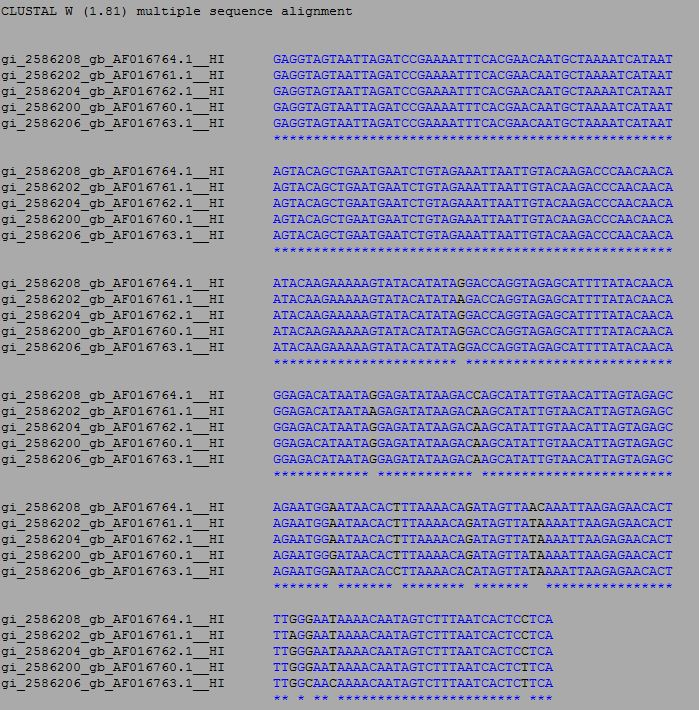 - Task 1: Select all of your sequences (seen above) using the appropriate command and run a multiple sequence alignment using Clustal W: