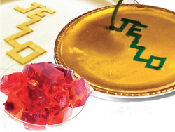 Jell-O is a desert made of gelatin, a macromolecular protein that can be found in mammals. Gelatin is a derivative of collagen, produced by breaking down the bones and skins of animals. Gelatin is inexpensive, easy to produce and can be stored for a long time without degradation, which makes it a good, simple and easily accessible material for producing low cost microfluidic devices.[1]