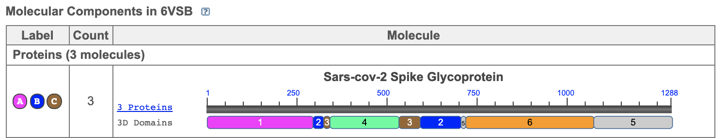 - NCBI. (2020). PDB ID 6VSB: Prefusion 2019-nCoV spike glycoprotein with a single receptor-binding domain up. Retrieved April 20, 2020 from https://www.ncbi.nlm.nih.gov/Structure/icn3d/full.html?&mmdbid=184713&bu=1&showanno=1.
