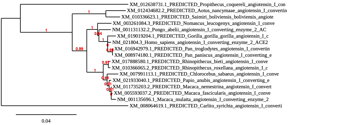 - Aligned Phylogeny.fr Homo sapiens ACE2 sequence with primate ACE2 sequences