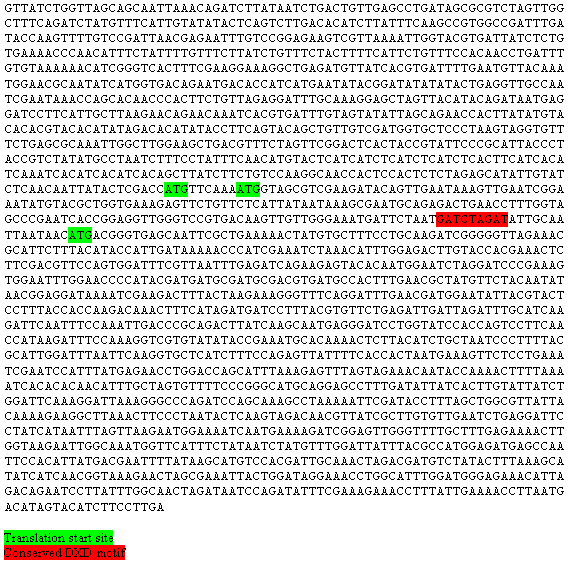 In Kluyveromyces lactis, a yeast that is closely related evolutionary to S. cerevisiae, tRNA nucleotidyltransferase is also targeted to the mitochondrion and cytosol. K. lactis tRNA nucleotidyltransferase was isolated by generating a temperature-sensitive CCA1 mutant in S. cerevisiae and screening for temperature-resistant mutants by complementation with a K. lactis library. The identified sequence, KlCCA1, showed a high level of identity with S. cerevisiae CCA1 and supported growth on both glucose and glycerol, suggesting that this protein was capable of mitochondrial and cytosolic transport. K. lactis has two in-frame start codons (at amino acid positions 1 and 4) which are