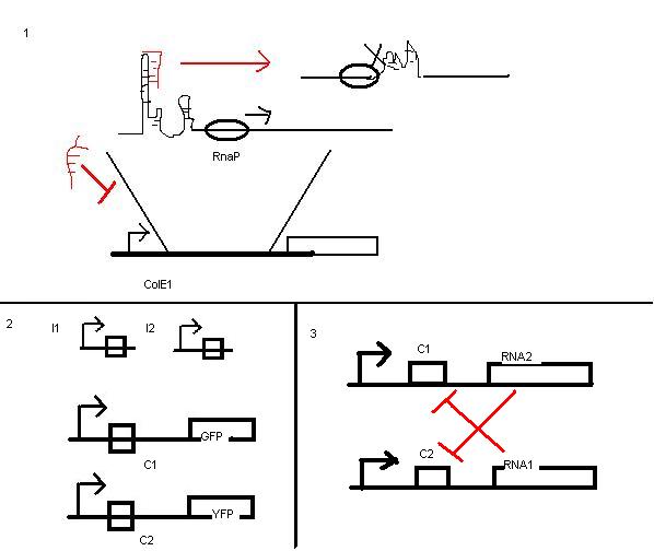 - put 2 orthogonal ColE1s behind two genes - 2 diff inputs, make sure only one on for each input
