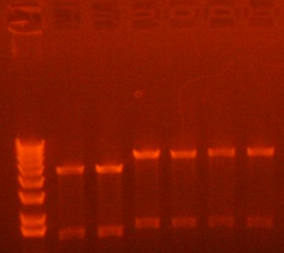 lanes 1-8: 42+44 (iGEM10_046) expected length: 6317bp Perfect: 4,7 MP: 4,7